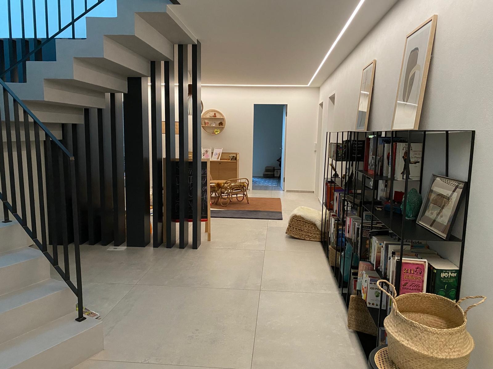 Au rez inférieur, l’ambiance devient plus intime et polyvalente : trois chambres confortables, une salle de douche, ainsi que des espaces parfaitement organisés (buanderie, cave, local technique avec PAC).